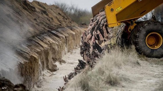 وتم دفن المنك في خنادق يبلغ عمقها 2.5 متر وعرضها 3 أمتار. ثم تم تغطية الطبقة الأولى من المنك النافق بالطباشير على عمق حوالي متر واحد قبل وضع طبقة أخرى من الحيوانات، وتغطيتها مرة أخرى بالطباشير ثم بالتراب، حسبما قال إلميغارد لأسوشيتد برس.
