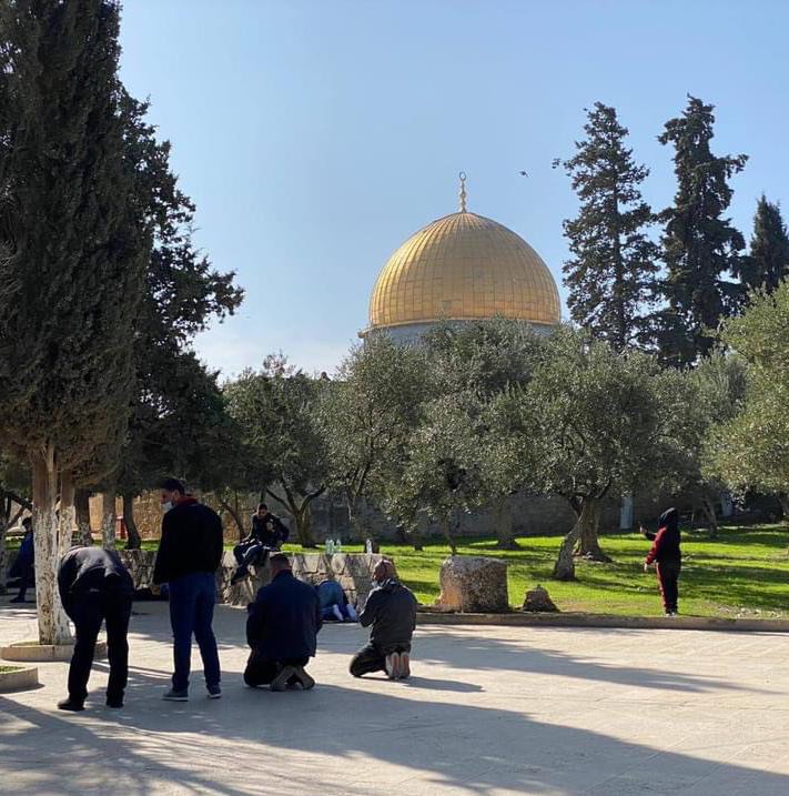 منذ ساعات صباح اليوم توافد المصلون من القدس والداخل الفلسطيني المحتل عام 1948 وقله ممن تم السماح لهم من الدخول لمدينة القدس من أبناء الضفة الغربية، وانتشر المتطوعين وحراس وسدنة المسجد الاقصى المبارك في دائرة اوقاف القدس في ساحات المسجد الاقصى المبارك لنشر التوعية في صفوف المصلين من التزام التباعد بين المصلين وتوزيع التعقيم على المصلين لحظة دخولهم للمسجد من أبوابها.