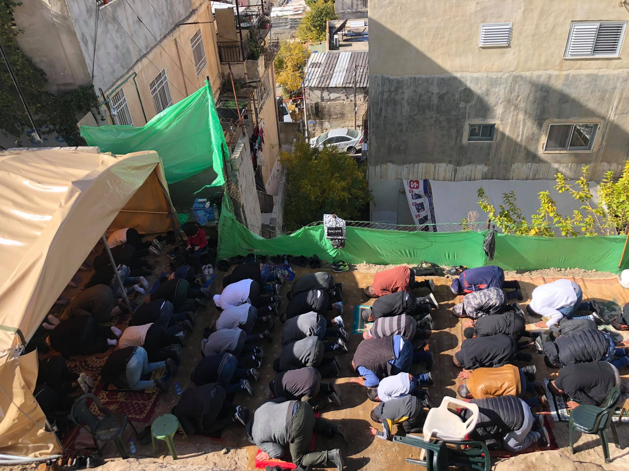 القدس المحتلة- الحياة الجديدة- ديالا جويحان- شارك العشرات من أهالي بلدة سلوان جنوب القدس المحتلة، اليوم الجمعة، في الصلاة التضامنية في خيمة الصمود والبقاء في حي بطن الهوى إذ أن  86 عائلة فلسطينية مهددة بالتهجير القسري لصالح الجمعيات الاستيطانية " عطيرت كوهنيم" بحجة ملكية اليهود للأرض المقام عليها البناء.