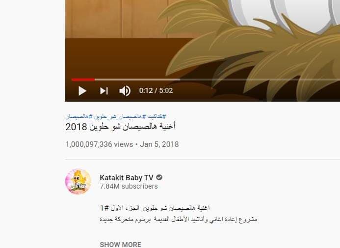 رام الله-الحياة الجديدة-استطاعت قناة كتاكيت بيبي الفلسطينية على اليوتيوب ان تتجاوز المليار مشاهدة على فيديو اغنية الصيصان ، ويعد هذا الفيديو الأول عربيا الذي يحقق مليار مشاهدة ، علما ان قناة كتاكيت قناة متخصصة في إعادة توزيع اغاني الاطفال القديمة وانتاجها من جديد بفيديو كرتوني ، وقد حققت قناة كتاكيت بيبي ملايين المشاهدات على اغانيها المختلفة وثمانية مليون مشترك للقناة.