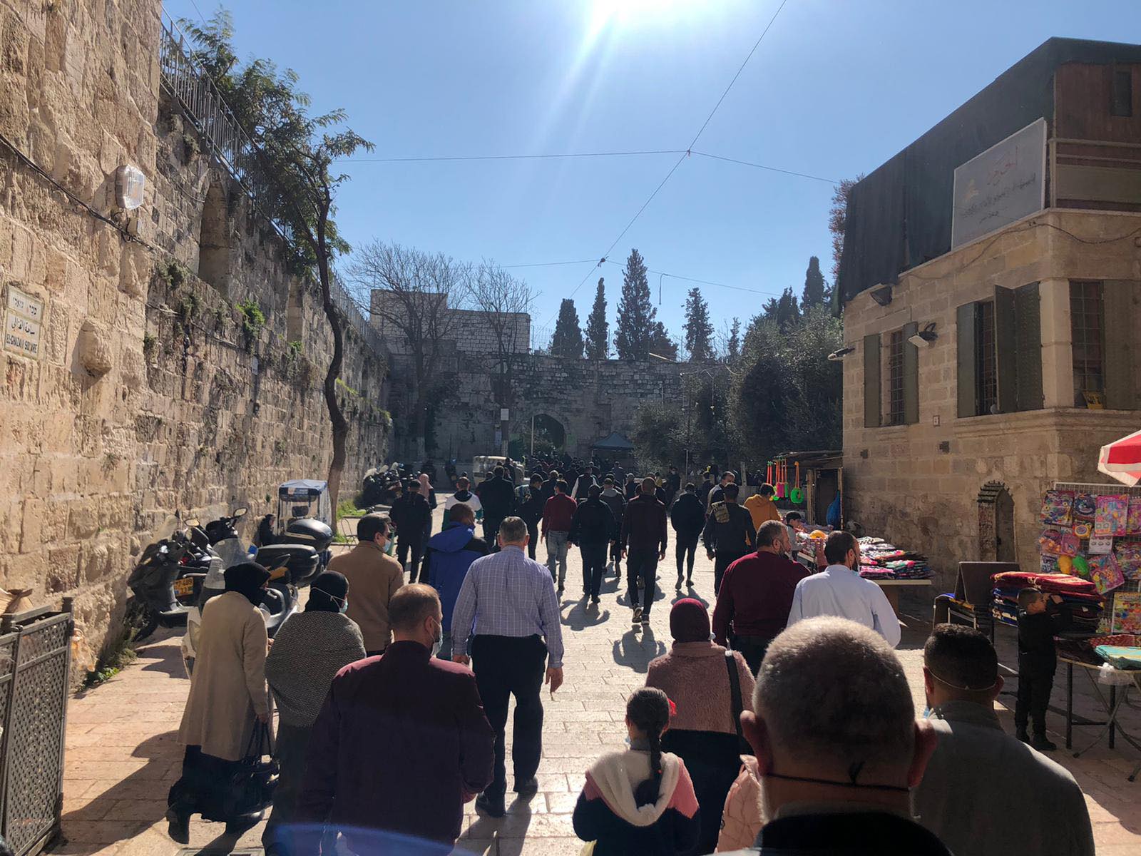 منذ ساعات الصباح، توافد آلاف المصلين من القدس والداخل الفلسطيني المحتل عام 1948 ومن استطاع الحصول على تصريح دخول من أبناء الضفة الغربية.