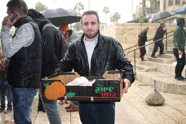 ووزع الشباب منقوشة زيت والزعتر على الحضور والمواطنين المقدسيين الى جانب احتساء الشاي الساخن.