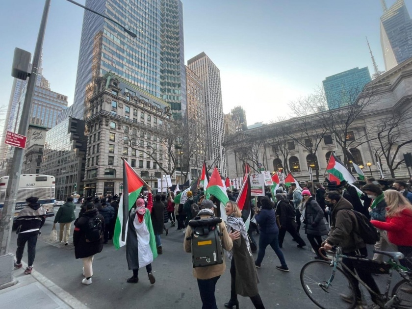 نيويورك - الحياة الجديدة - شارك المئات من أبناء الجاليات الفلسطينية والعربية والإسلامية ونشطاء السلام في الولايات المتحدة، في مسيرة جابت حي "منهاتن" بمدينة نيويورك، ضمن فعاليات إحياء يوم الأرض، للتذكير بحقوق شعبنا غير القابلة للتصرف، وللاحتجاج على المنظمات العاملة التي تمول دولة الاحتلال وجرائمها بحق شعبنا.