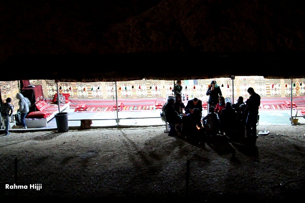 يُقلب عبدالله الحمادين (27 عامًا)، بذور القهوة الخضراء بهدوء تام في الـ"محماسة" المعدنية، وخلال دقائق تتصاعد رائحتها التي تشغف الجميع حول النار، بانتظار شربها، وحين تململ أحدهم مازحًا، قال صالح الحمادين (38 عامًا) "القهوة بالنسبة إلينا جلسة وسهرة وتبادل أحاديث وقصص وليس مثلكم تصبح جاهزة خلال دقيقتين وانتهى الأمر".