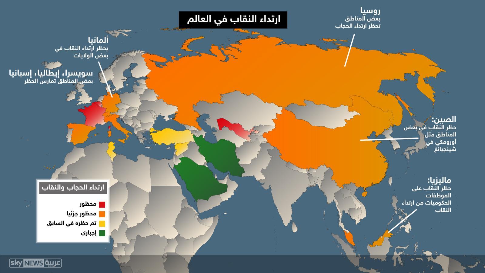 انفوغراف يظهر حظر النقاب حول العالم:
