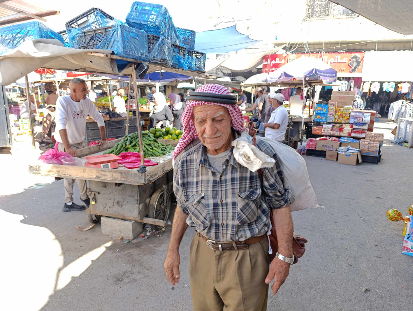 وينتقل بين جنين وبلداتها، وطوباس، ونابلس، والأغوار، وأحيانا طولكرم، ولم يستطع الوصول منذ فترة إلى أراضي الـ 48، عقب انتفاضة عام 2000 بعد أن أخبرته شرطة الاحتلال أن حمل حقيبة والتنقل بها سيقتل صاحبها غالبا.