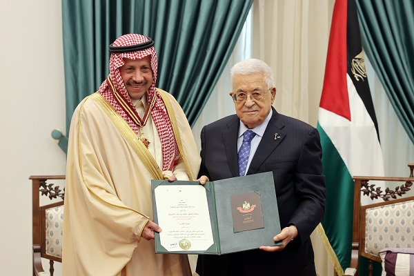 الرئيس يقلد سفير السعودية لدى فلسطين قنصلها العام في القدس نجمة القدس من وسام القدس