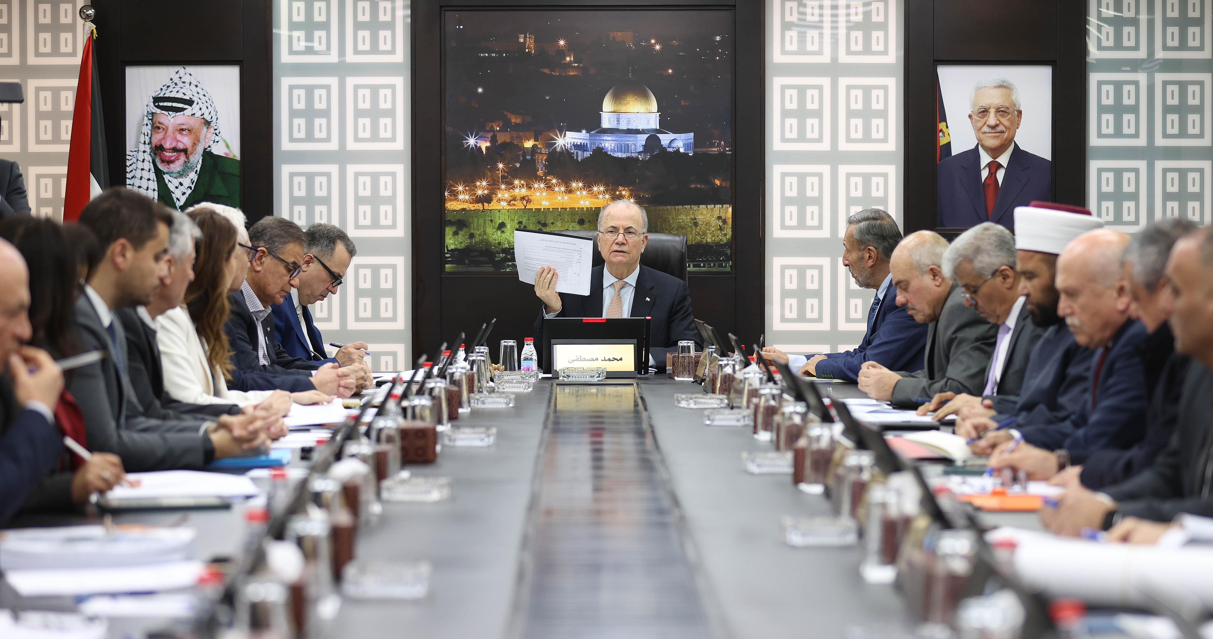 جدد مجلس الوزراء تأكيده على بيان الرئاسة وموقف سيادة الرئيس محمود عباس بأن دولة فلسطين هي صاحبة الولاية القانونية والسياسية على القطاع، كباقي الأرض الفلسطينية المحتلة في الضفة الغربية بما فيها القدس، ورفض اقتطاع أي جزء منه ورفض الموافقة على إبعاد أي مواطن فلسطيني عن وطنه، وأن الحكومة الفلسطينية وبتوجيهات الرئيس قد أتمَّت الاستعدادات كافة لتولي مسؤولياتها الكاملة في قطاع غزة، وأن طواقمها الإدارية والأمنية لديها كامل الاستعداد للقيام بواجباتها، للتخفيف من معاناة شعبنا، وعودة النازحين إلى منازلهم وأماكن سكناهم، وإعادة الخدمات الأساسية من مياه وكهرباء، واستلام المعابر، وإعادة الإعمار.