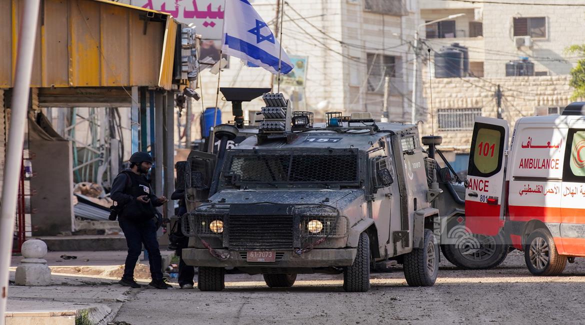 ويواصل جيش الاحتلال دفع تعزيزات عسكرية مدعومة بالجرافات إلى مدينة جنين، مع تمركز الآليات العسكرية أمام مستشفى جنين الحكومي، وسط تحليق الطيران الحربي والمُسير في سماء المدينة والمخيم.