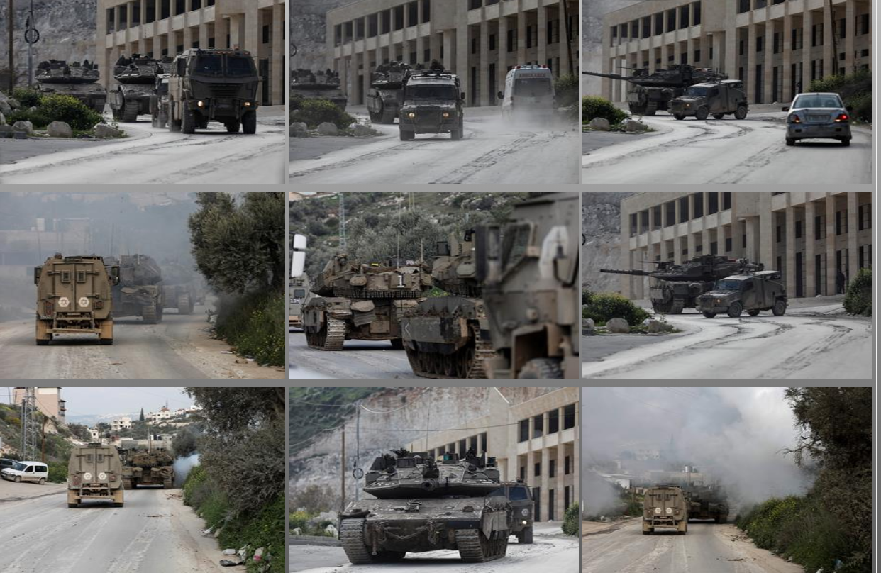 ويستمر الاحتلال في دفع تعزيزات عسكرية ومدرعات إلى المدينة والمخيم، ونشر قوة من الجنود المشاة في منطقة الغبز في محيط المخيم ومنطقة واد برقين، وشق الطرق وتوسيعها، وتغيير معالم المخيم، وهدم منازل المواطنين.