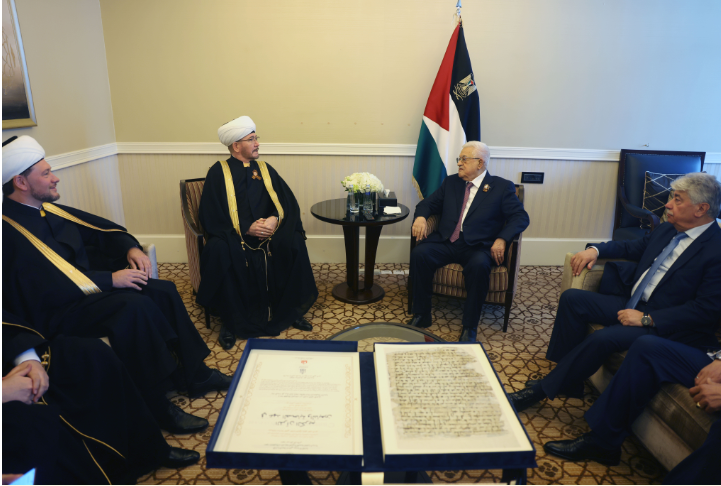 وشكر السيد الرئيس المفتي عين الدين والوفد المرافق على مواقفهم الداعمة للشعب الفلسطيني وحقوقه المشروعة، وأكد دعمه الكامل لمسلمي روسيا.