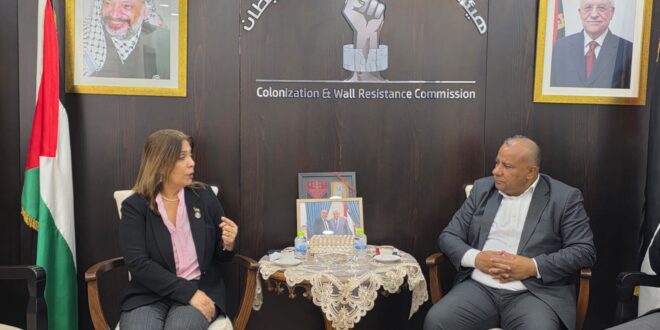 رام الله 3-2-2026 وفا- بحث رئيس هيئة مقاومة الجدار والاستيطان الوزير مؤيد شعبان، اليوم الثلاثاء، مع وزيرة شؤون المرأة منى الخليلي، آليات توحيد الجهود في رصد وتوثيق الانتهاكات التي تتعرض لها المرأة الفلسطينية من قبل جيش الاحتلال والمستعمرين.