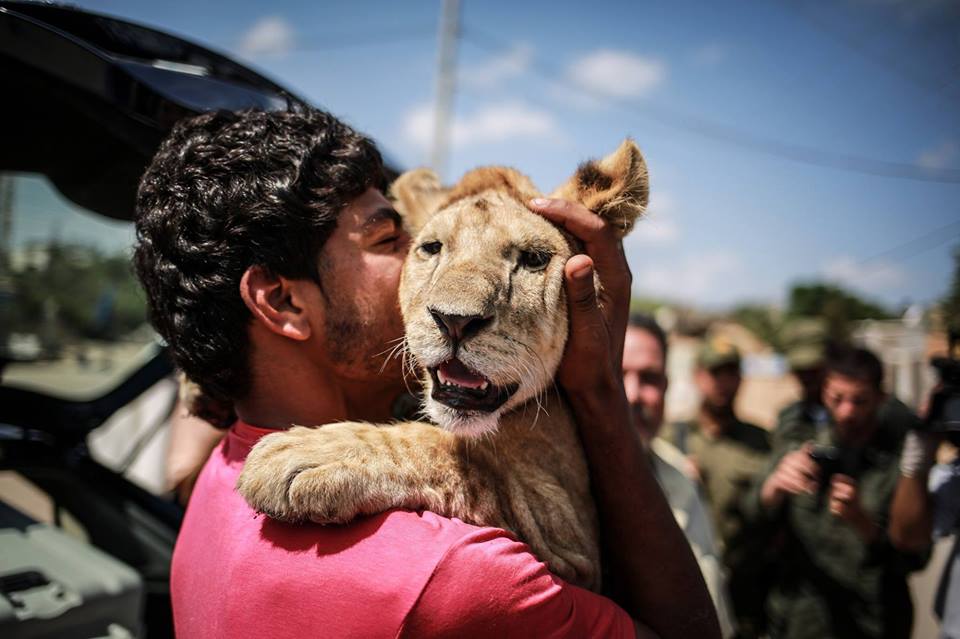 وكان يصطحبهما عندما كانا شبلين الى الحدائق القليلة في قطاع غزة ويسمح لمواطنين بالتقاط الصور معهما.