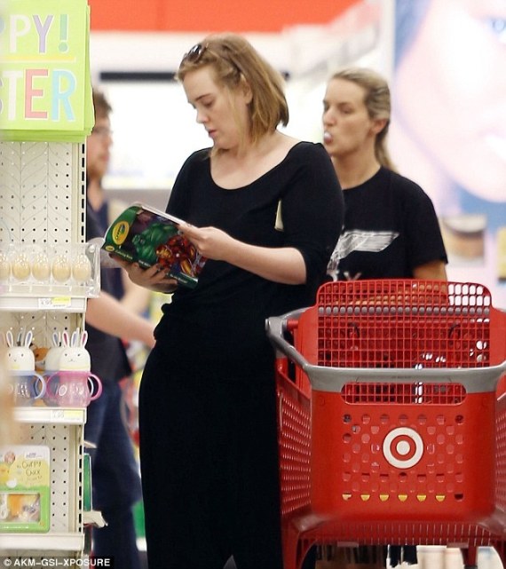 وبالرغم من شهرتها، لم تكن أديل محاطة بمن يساعدها، حيث سارت وحدها مع عجلة التسوق الخاصة بها، في الوقت الذي رصدت فيه عدسة التصوير النجمة الشهيرة بوضوح، لم يلحظ الآخرون بالمتجر وجود النجمة الشهيرة في المكان ذاته، حيث ارتدت ملابس عملية وعادية مثل معظم الناس.