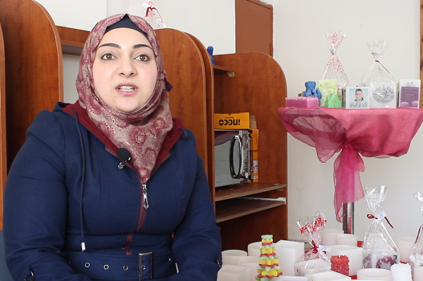 منال مسالمة، شابة تعيش في مدينة دورا، وعملت في أحد المراكز كمدربة للسيدات على تشكيل الشموع، وما أن لبثت تدرّب في المؤسسات المتنوعة حتى تداركت فكرتها بانشاء مصنع للشموع بمساعدة زملائها، ليتحوّل التدريب بالكلمات الى منتجات تزيّن الأسواق وبيوت الراغبين.