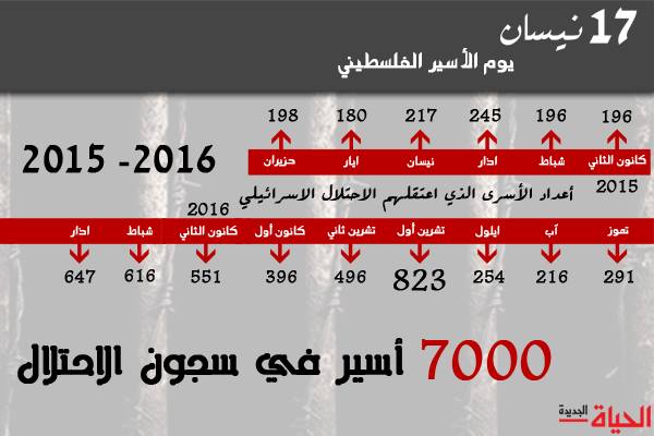 وتضاعف عدد الاسرى الاداريين في سجون الاحتلال منذ عام 2014 حيث كان 200 اسير، بينما وصل في الربع الاول من عام 2016 الى 700 أسير، ويوضح قراقع أن الرقم مرشح للزيادة؛ اذ تحاول دولة الاحتلال من خلال هذا الاجراء ممارسة العقاب الجماعي وزج أكبر عدد ممكن من الفلسطينيين في السجون.