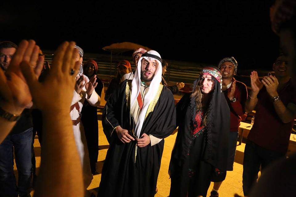 وكان لمراسم العرس البدوي الذي اقيم للعروسين اللذان رافقا الوفد في الجولة( سمعان وخطيبته) من رام الله، حيث إرتديا الثياب الخاص بالزواج البدوي، وصاحب ذلك انغام الموسيقى البدوية التراثية وخاصة "الدحية"، وشارك الوفد بالدبكة الشعبية للمجتمعات البدوية .