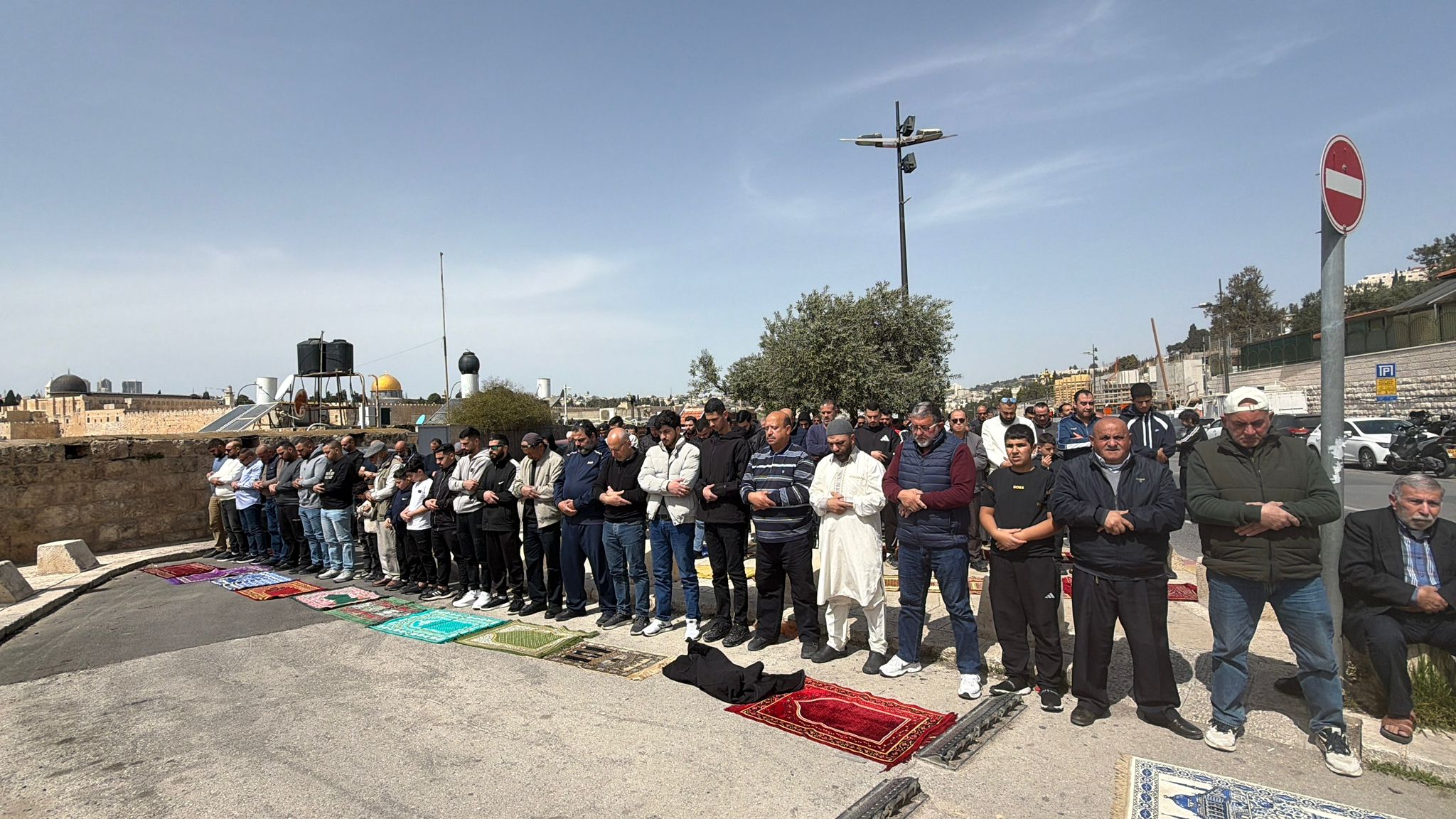 مصلون يؤدون “الجمعة الحزينة” في شوارع القدس بعد إغلاق المسجد الأقصى
