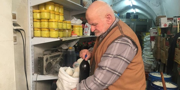 يشير مجاهد بيده إلى السمنة البلدية التي يصنعها بنفسه من مواد صحية وطبيعية، ويقول: "هذه سمنة بلدية مصنوعة من برغل وزبدة بلدية، ولم يدخل بها أي مواد حافظة، فغالبية الأشخاص الذين يتعرضون لأمراض بسبب السمنة لأنها تكون ضارة على اجسامهم، أما هذه السمنة فهي صحية وطبيعة".