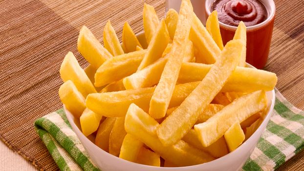 الكربوهيدرات والبروتين والدهون. العنصر الأساسي في البطاطس المقلية هو الكربوهيدرات، ويحتوي الـ 20 إصبع من البطاطس المجمّدة على 28 غراماً من الكربوهيدرات، و5 غرامات من الدهون و3 غرامات من البروتين.
