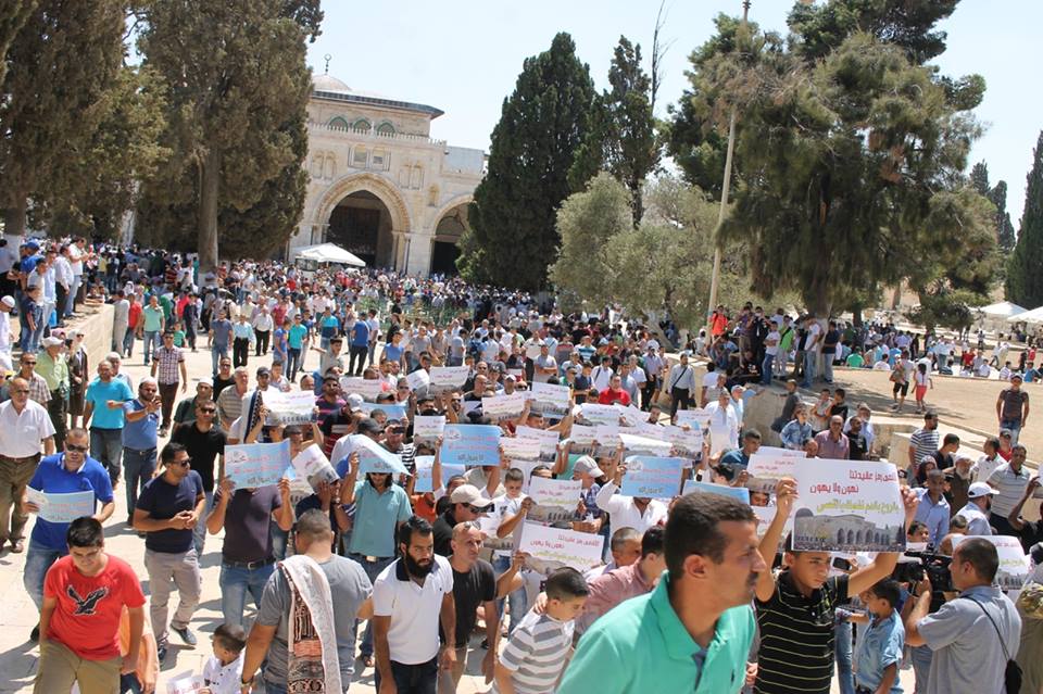 القدس المحتلة - ديالا جويحان - شارك عشرات المقدسيين، اليوم، عقب انتهاء صلاة الجمعة في المسجد الأقصى، بوقفة احتجاجية ضد منع سلطات الاحتلال المصلين الأسبوع الماضي من دخول المسجد.