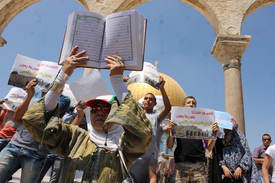وقالت النساء المشاركات، بأن حكومة الاحتلال تتعمد بين الفينة والأخرى افتعال هذه الاستفزازات ومنع المصلين من دخول المسجد والسماح للمتطرفين اليهود تدنيسه ونشر الفساد بداخله، الى جانب افعالهم المشينة من رقص وشتائم والبصق على المصلين بعد خروجهم وكل ذلك تحت حماية وترحيب من جنود الاحتلال.