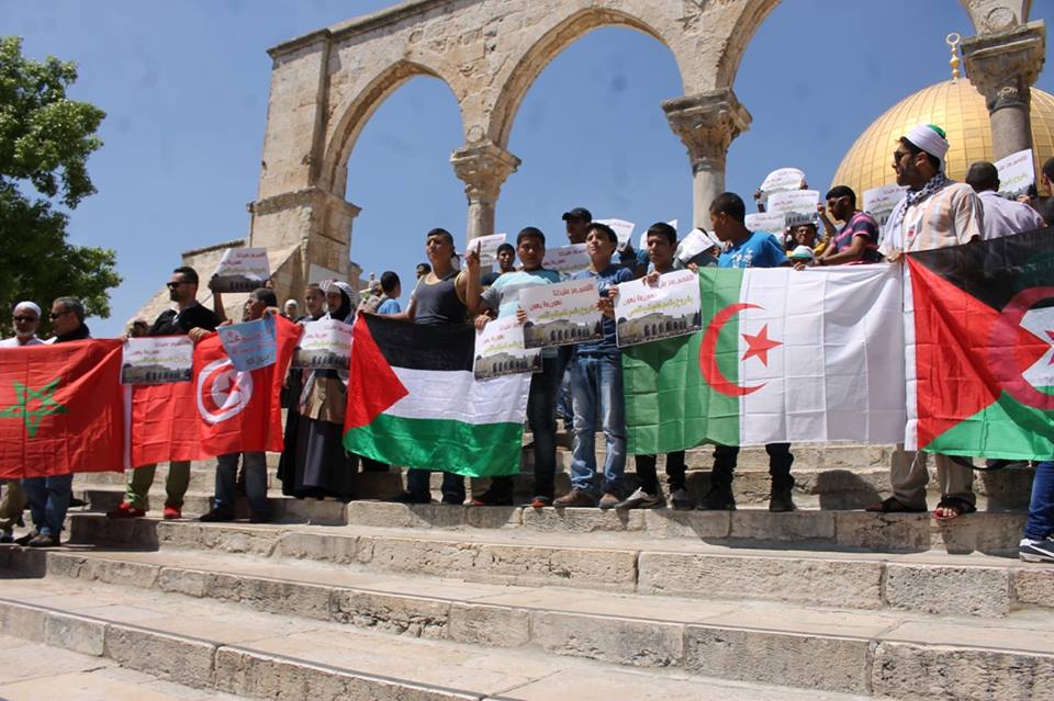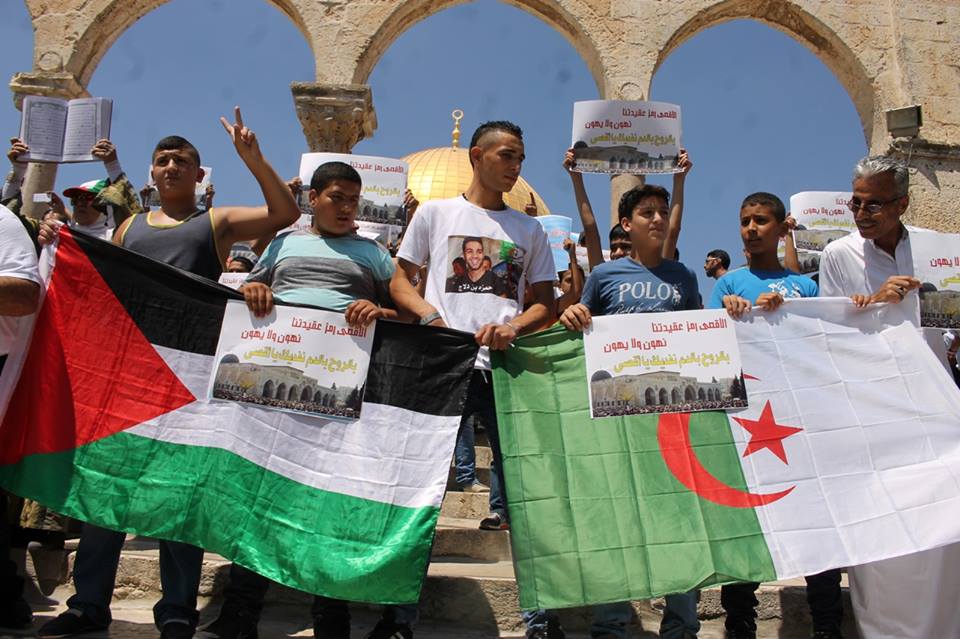 ورفع المشاركون يافطات كتب عليها،"فداء روحي ودمي ونفسي ومالي يا رسول الله. الا رسول الله، الاقصى رمز عقيدتنا نهون ولا يهون.. بالروح بالدم نفديك يا أقصى"، كما رفع المشاركون العلم الفلسطيني واعلام دول الجزائر، تونس، المغرب، تركيا، من أجل إيصال رسالة للعالم العربي والإسلامي بأن تتجه بوصلتهم نحو القدس والمسجد الاقصى المبارك والتحرك العاجل لوقف الانتهاكات التصعيدية بحقه.