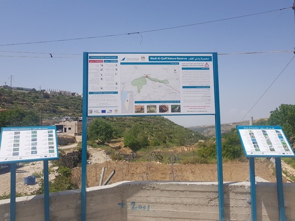 وأشارت دائرة الإعلام الالكتروني في موقع محميات فلسطين، بان تركيب اللوحات الارشادية تم بالشراكة مع سلطة جودة البيئة وبالتعاون مع البلديات ذات العلاقة بدعم من الاتحاد الأوروبي، ضمن إطار تعزيز مبدأ الشراكة والتعاونية في العمل على استدامة المحميات الطبيعية وتعزيز السياحة البيئية في المحميات الطبيعية.