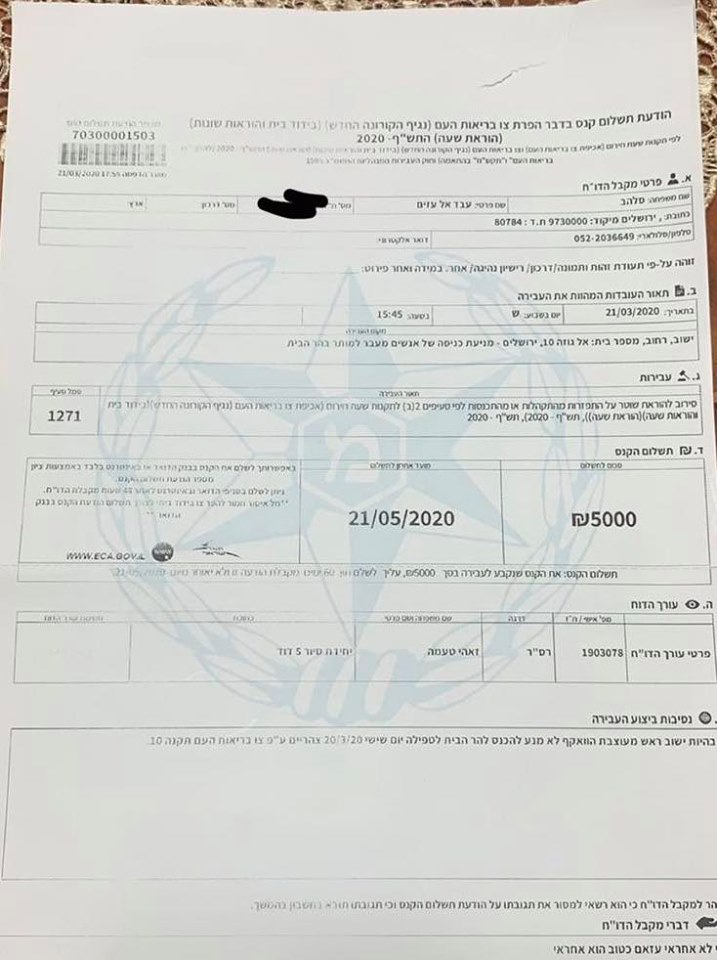 وكانت سلطات فور الاعلان عن حالة الطوارئ في مدينة القدس شنت حملة قرارات بحق أبناء مدينة القدس في حال عدم الالتزام فيها وهي المخالفات المالية بحق المواطنين.