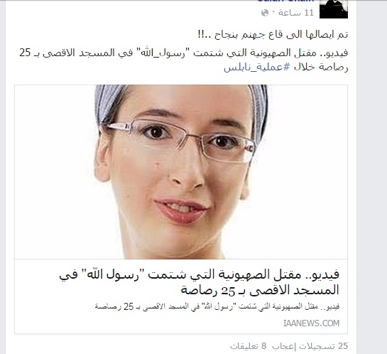 حالة تأييد على الفيسبوك لاستهداف المستوطنين
