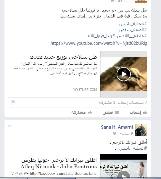 واستعاد البعض أغنيات وطنية تتسم بالطابع التعبوي في ظل حالة التصعيد التي يعيشها الشارع الفلسطيني مؤخراً بعد تكرار اعتداءات الاحتلال على المسجد الأقصى وسقوط عدة شهداء آخرهم ضياء تلاحمة وهديل الهشلمون في مدينة الخليل.