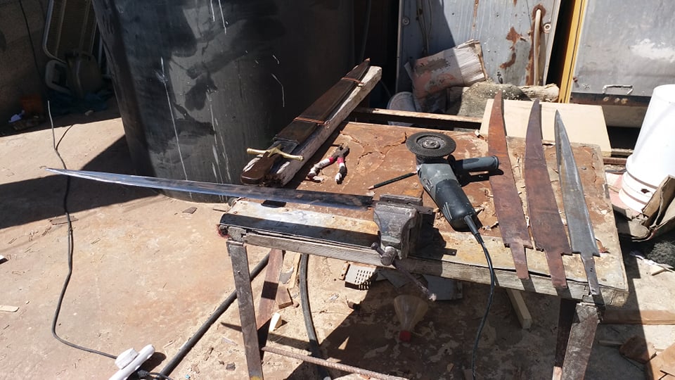 وعن المراحل التي تمر فيها صناعة السيف، يقول : تبدأ المرحلة الأولى بجمعي للحديد الذي أصنع منه نصل السيف ويكون بالعادة حديد سيارات قديمة أقوم بإدخاله للفرن، صناعته يدويا تعمل على تليين الحديد، وحرق بقايا الطلاء القديم، من ثم أقوم بقصه على شكل نصل السيف حسب نوع السيف المراد صناعته.
