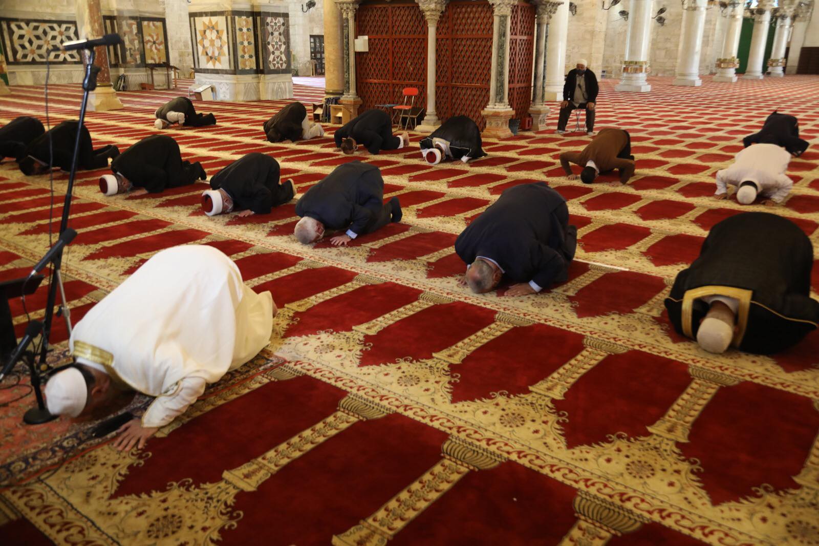 وأدى نحو (80) مصلياً من حراس وسدنة وموظفي دائرة أوقاف القدس الاسلامية الصلاة داخل المسجد القبلى والأروقة والساحات، بينما أدى السكان القاطنون في محيط أبواب المسجد الاقصى المبارك صلاة الجمعه على عتابته عند أبواب باب الأسباط، وباب الحديد، وباب المجلس، وباب السلسلة، وباب حطه مع إتباع الارشادات الوقائية والتباعد مسافة متر عن كل مصلٍ وألا يترواح عددهم الـ 19 مصليا.