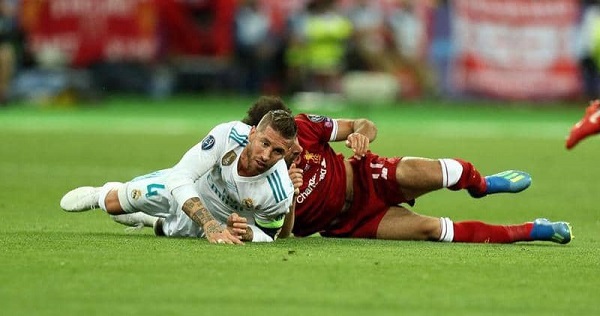 وحدثت الواقعة الشهيرة خلال نهائي دوري أبطال أوروبا في كييف، عام 2018، بين ريال مدريد وليفربول، والتي أوقع فيها المدافع راموس، نجم ليفربول محمد صلاح على الأرض، متسببا بخلع في الكتف، مما أخرج الأخير باكيا من المباراة.