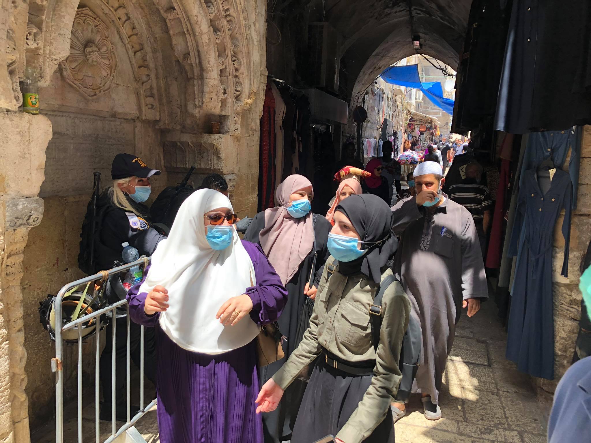 وكان جنود الاحتلال انتشروا منذ ساعات الصباح وحتى ساعات ظهيرة على مداخل أبواب المسجد الأقصى المبارك وعلى أبواب البلدة القديمة وطريق الواد، وحرروا عددا من المخالفات المالية للمصلين بسبب عدم الالتزام بارتداء الأقنعة الواقية بسبب وباء فيروس كورونا كوفيد 19.