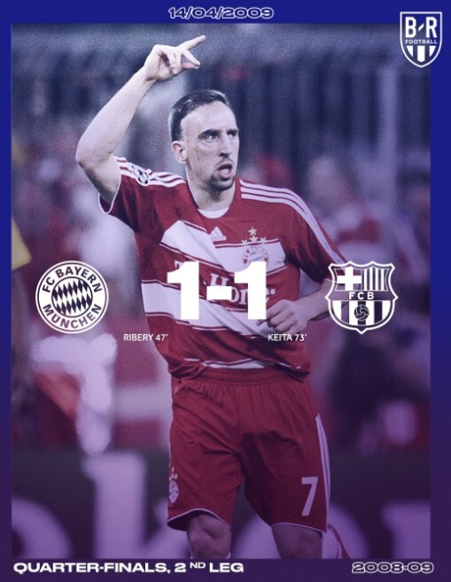 6- ربع نهائي دوري الأبطال 2008-2009 تعادل الفريقان في مباراة الإياب في ألمانيا بهدف لكل منهما.