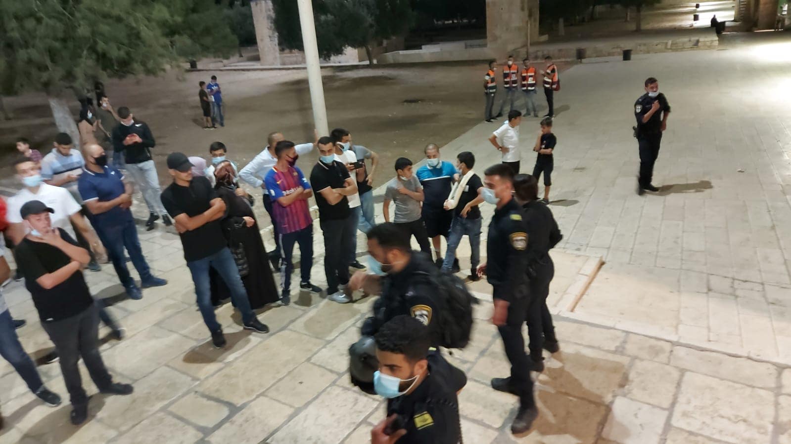 وقامت شرطة الاحتلال بفتح باب السلسلة _ احد ابواب الأقصى _ وسمحت للمصلين الخروج فقط من خلاله.واشار جيش الاحتلال الى ان احد جنوده اصيبوا طعنا.