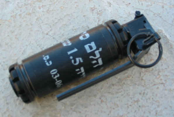 أحد انواع القنابل الصوتية التي يستخدمها جنود الاحتلال.