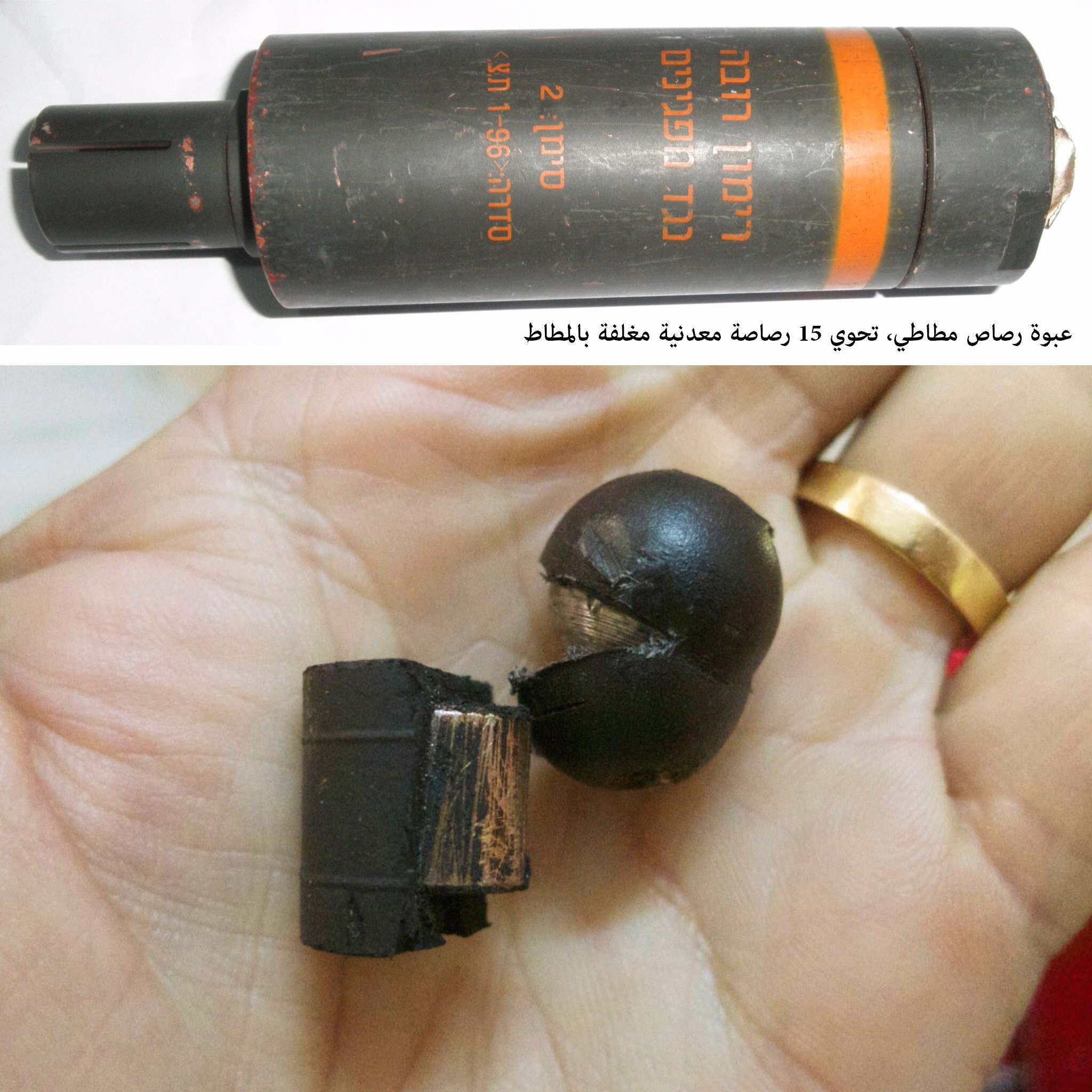 اسطواني يطلق على شكل 15 حبة دفعة واحدة، هذه الطلقات معدنية مغلفة ب1-2 ملم من المطاط، يطلق من فوهات متعددة الرؤوس تطلق 15 طلقة دفعة واحدة، كما يمكن إطلاقها من فوهة خاصة تثبت على بنادق ام -16 التي يستخدمها الاحتلال. اسم هذا النوع من الرصاص مضلل، فالانطباع عن الرصاص المطاطي أنه سلاح غير قاتل كما يصور ويسوق جيش الاحتلال، إلا أنه ومنذ عام 2000 أثبتت حالات قتل مباشر بالرصاص المطاطي.