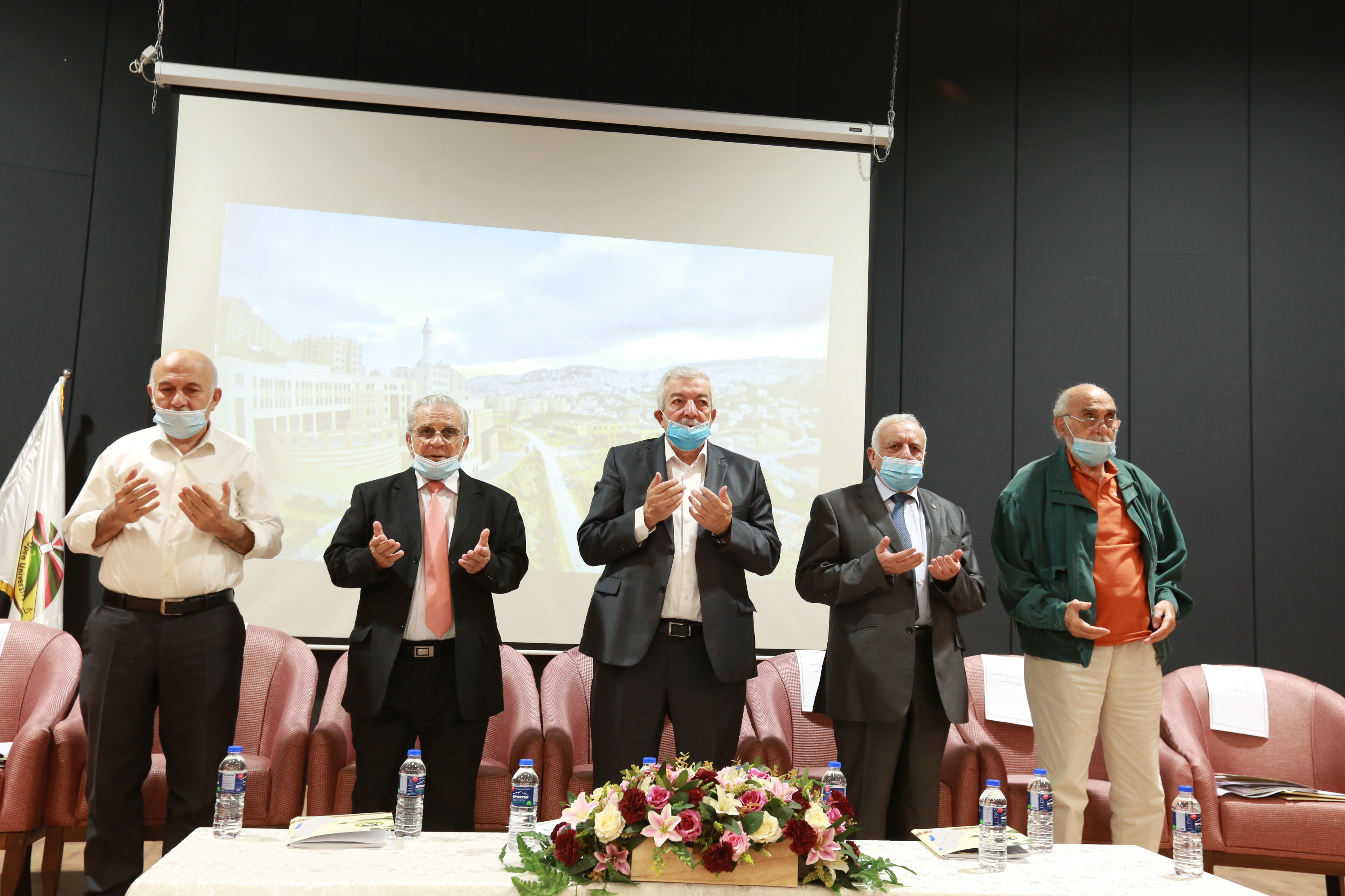 وعقد الاجتماع بحضور م. عدنان سمارة رئيس مجلس أمناء الجامعة ورئيس المجلس الأعلى للإبداع والتميز، و أ. د. يونس عمرو رئيس الجامعة، ورجل الأعمال منيب المصري، و أ. يوسف حرب وكيل وزارة الداخلية، و أ. عنان الأتيرة نائب محافظ نابلس، و م. عدلي يعيش رئيس لجنة الموارد المالية في لجنة مبنى نابلس.