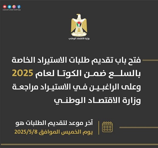 فتح باب تقديم طلبات الاستيراد الخاصة بالسلع ضمن الكوتا 2025
