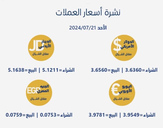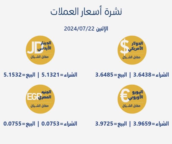 أسعار العملات مقابل الشيقل