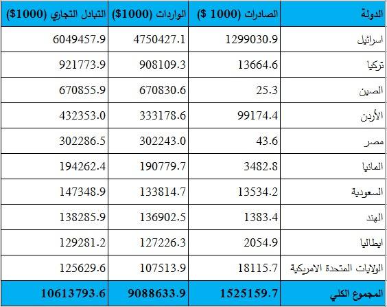 قيمتها 7.7 مليار دولار.. تراجع الواردات السلعية الفلسطينية خلال العام الماضي بنسبة 14.8%