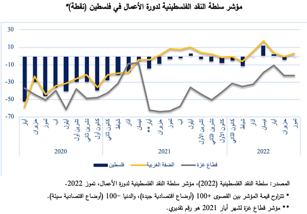 مؤشر سلطة النقد لشهر تموز: تحسن في الضفة واستقرار في غزة