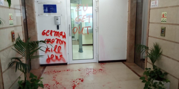 مجهولون يعتدون على مكاتب سفارة الاتحاد الأوروبي في منطقة تل أبيب