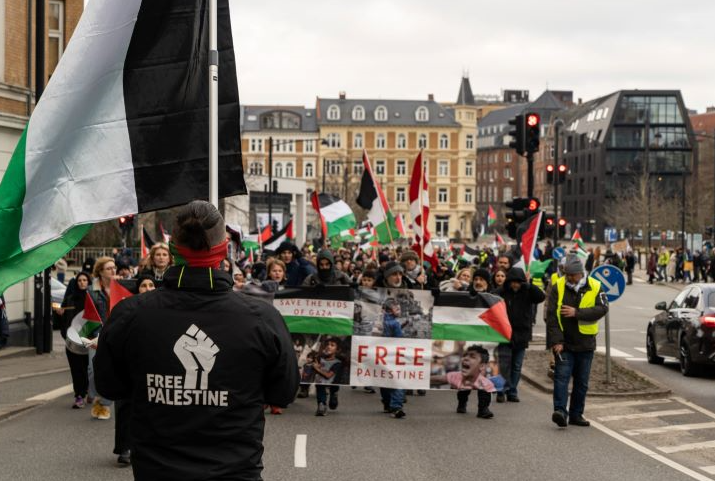 تظاهرة في مدينة آرهوس الدنماركية نصرة لفلسطين ورفضا للعدوان على غزة