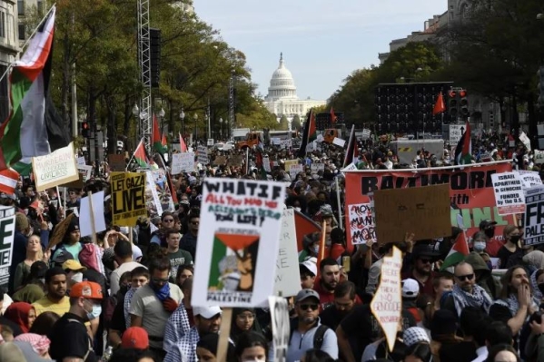 أميركا: متضامنون يتظاهرون في عدة ولايات أميركية للمطالبة بوقف العدوان على غزة