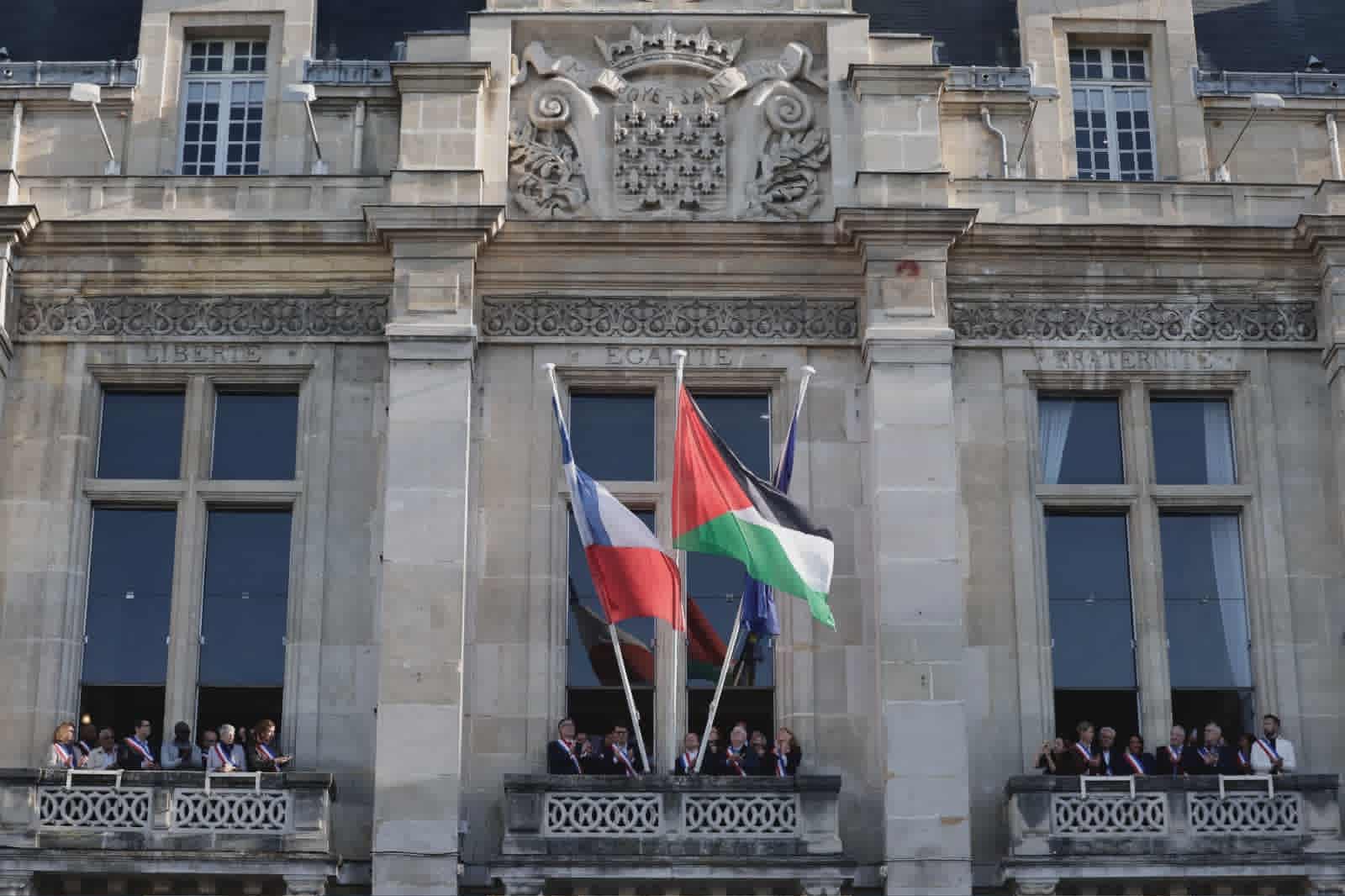 رفع العلم الفلسطيني على واجهة مبنى بلدية سان دوني في فرنسا