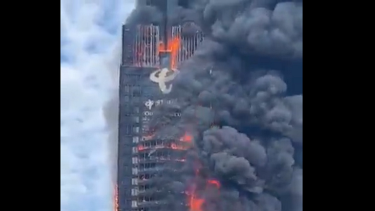 حريق كبير في ناطحة سحاب وسط الصين