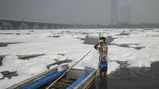الرغوة السامة تكسو نهرا مقدسا.. والاستحمام به "لا ينقطع"